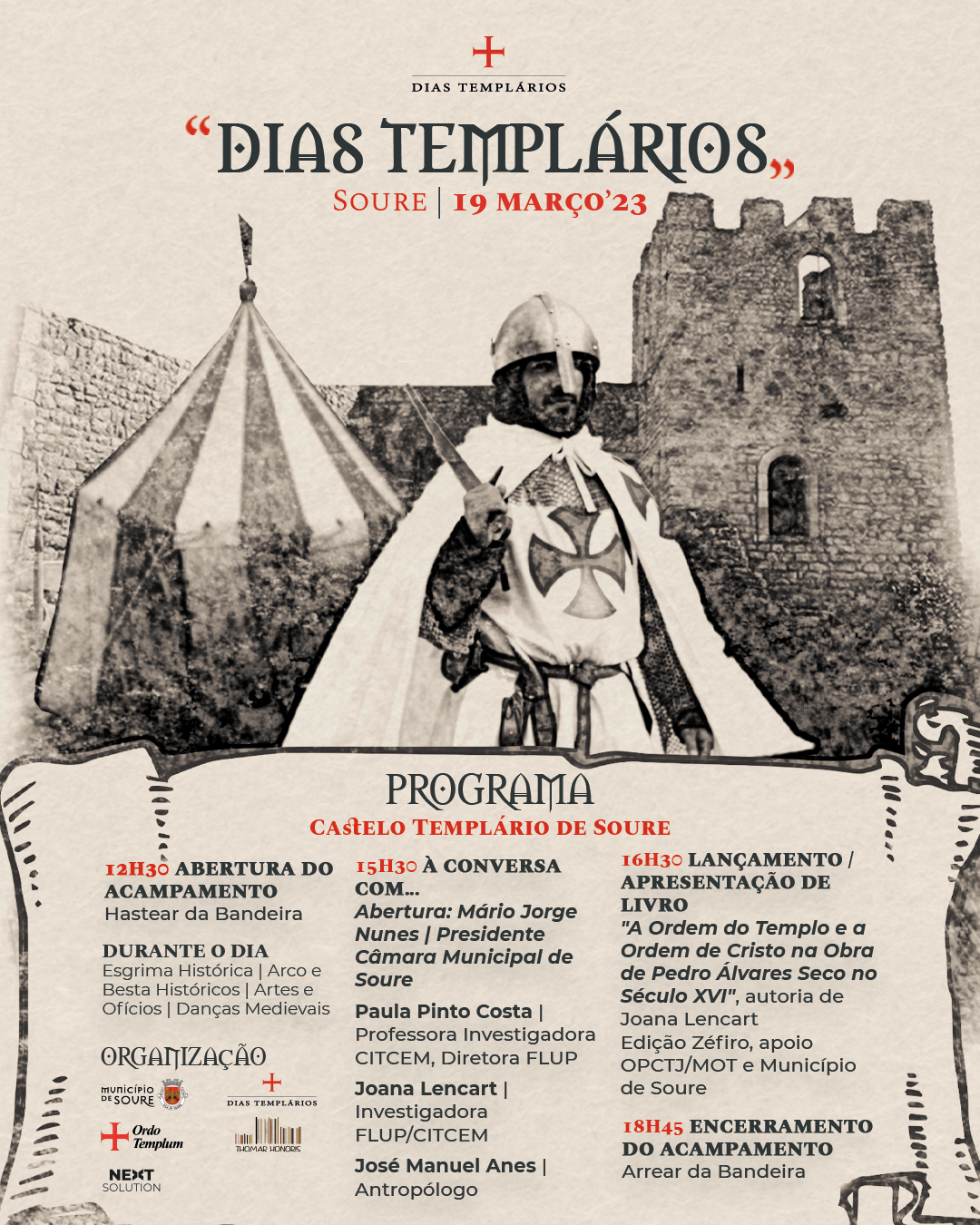 Na rubrica “À conversa com…”, há nomes sonantes na temática das Ordens do Templo e de Cristo, como Paula Pinto Costa (Professora Investigadora CITCEM e Diretora FLUP), Joana Lencart, investigadora FLUP/CITCEM, e José Manuel Anes, antropólogo e escritor, com abertura do presidente da Câmara Municipal de Soure, Mário Jorge Nunes.