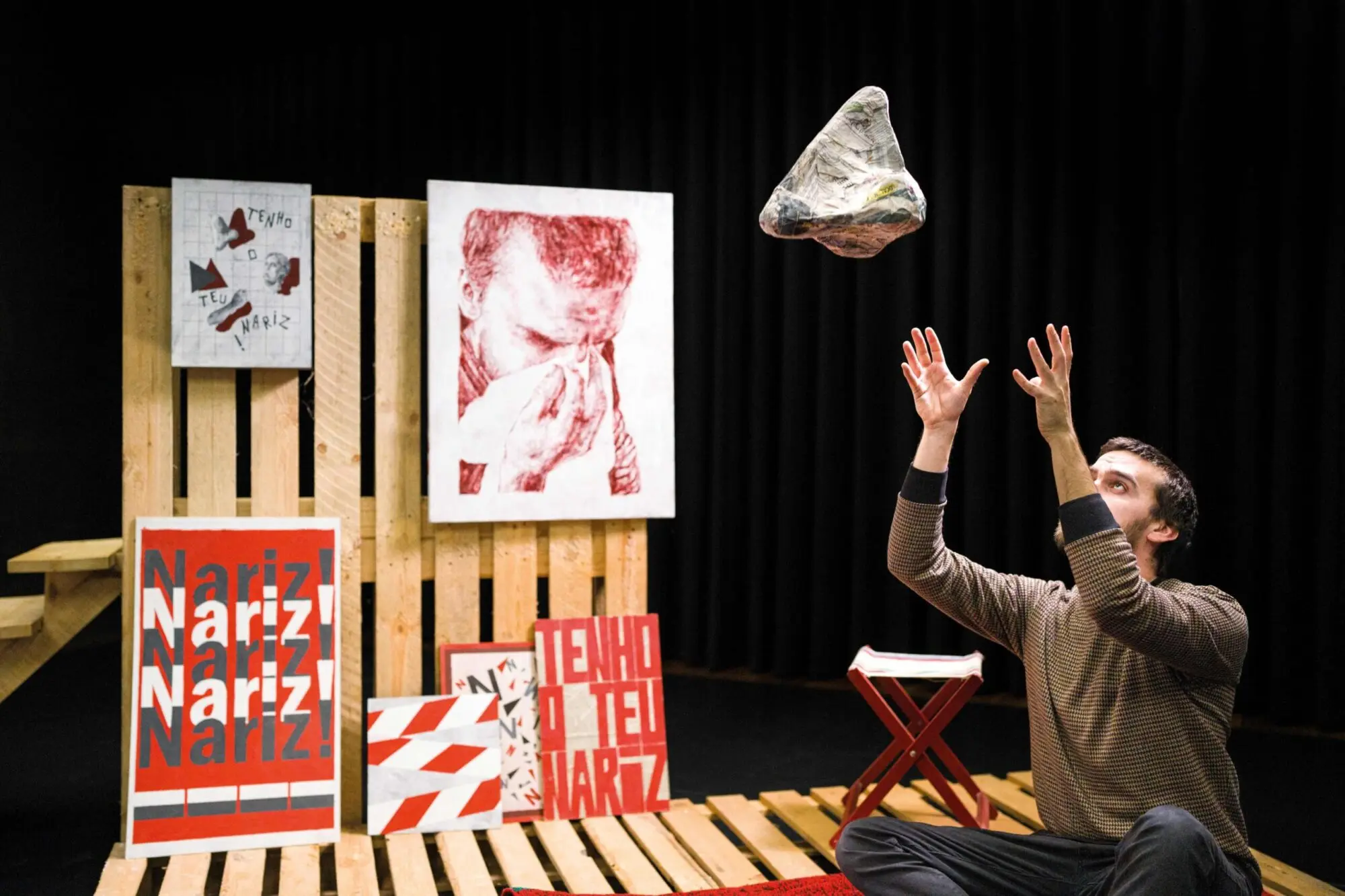 Dos 41 espetáculos que compõem a programação desta edição, dois nascem das propostas vencedoras da CACL – Chamada de Apoio à Criação Local. A performance “Tenho o teu nariz”, do artista feirense Fábio Araújo, é uma intervenção artística multidisciplinar que combina teatro, música, percussão, pintura e ilustração, onde não há respostas concretas, mas reflexão e questionamento em torno de temáticas prementes que tocam os jovens. O nariz é apresentado como metáfora de múltiplas histórias que exploram desafios contemporâneos, como democracia e liberdade, manifestação e protesto. O espetáculo estreia no primeiro dia do festival, 23 de maio, às 21h00, num percurso itinerante entre a Praça da República e o Largo do Tribunal.