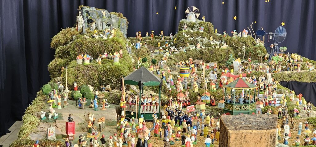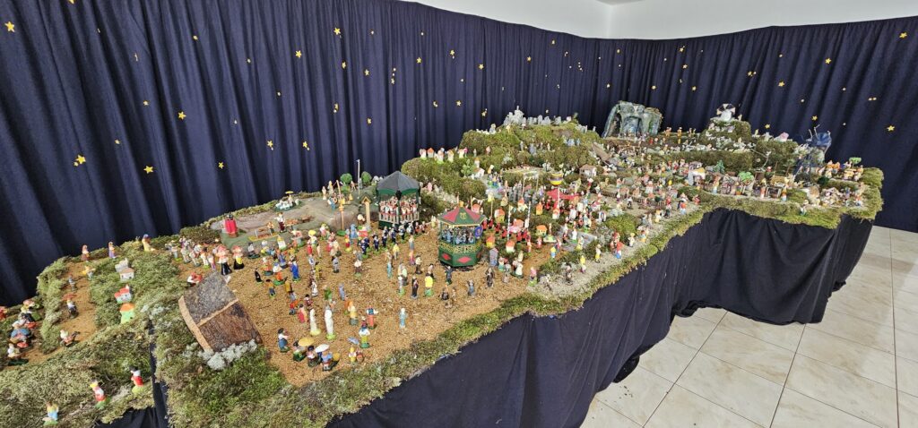 Da autoria de Fausto Oliveira, o presépio é o resultado de cerca de 80 a 90 horas de trabalho, desenvolvidas entre meados de novembro e 13 de dezembro, com o apoio de familiares. “Aqui estivemos eu e mais três pessoas, principalmente uma filha e o companheiro. Foram cerca de 80 a 90 horas de trabalho”, explicou o autor, estimando que o conjunto integre atualmente “cerca de mil figuras”.