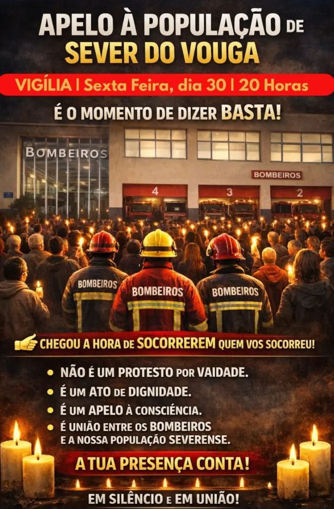 A população de Sever do Vouga está a ser chamada a participar numa vigília de apoio aos Bombeiros Voluntários do concelho, marcada para esta sexta-feira, dia 30, às 20 horas, em frente ao quartel da corporação. A iniciativa surge num contexto de forte tensão interna na Associação Humanitária e é apresentada como um momento simbólico de união, silêncio e firmeza.
