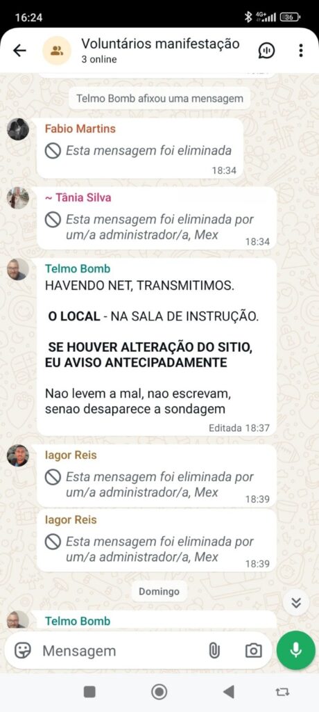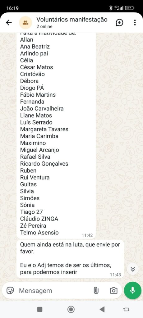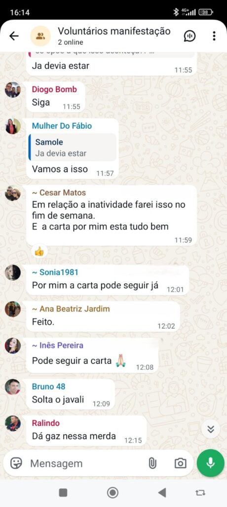 Nas mensagens, vários participantes indicam posteriormente ter formalizado o pedido através da aplicação interna da corporação ou por correio eletrónico. Em alguns casos são também identificados elementos que ainda não o tinham feito, sendo incentivados a avançar com a iniciativa.