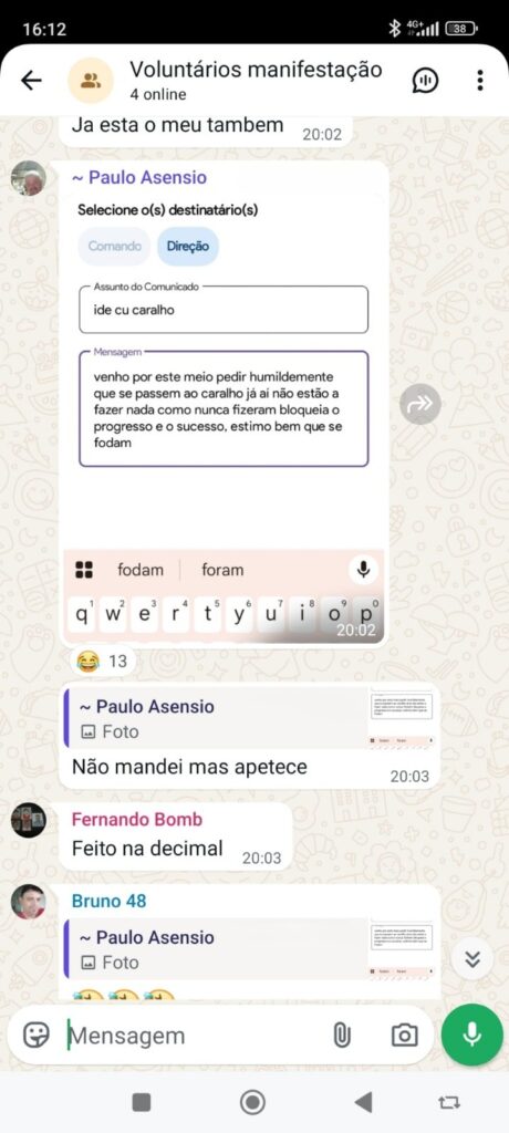 As mensagens revelam um clima de tensão interna na corporação e demonstram a existência de um grupo de bombeiros que procura expressar a sua discordância relativamente a decisões em curso na associação humanitária.