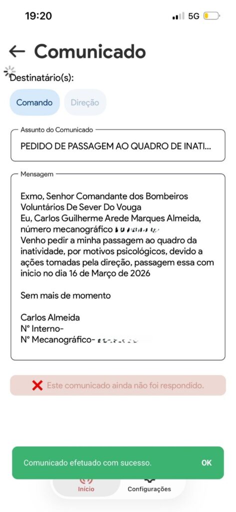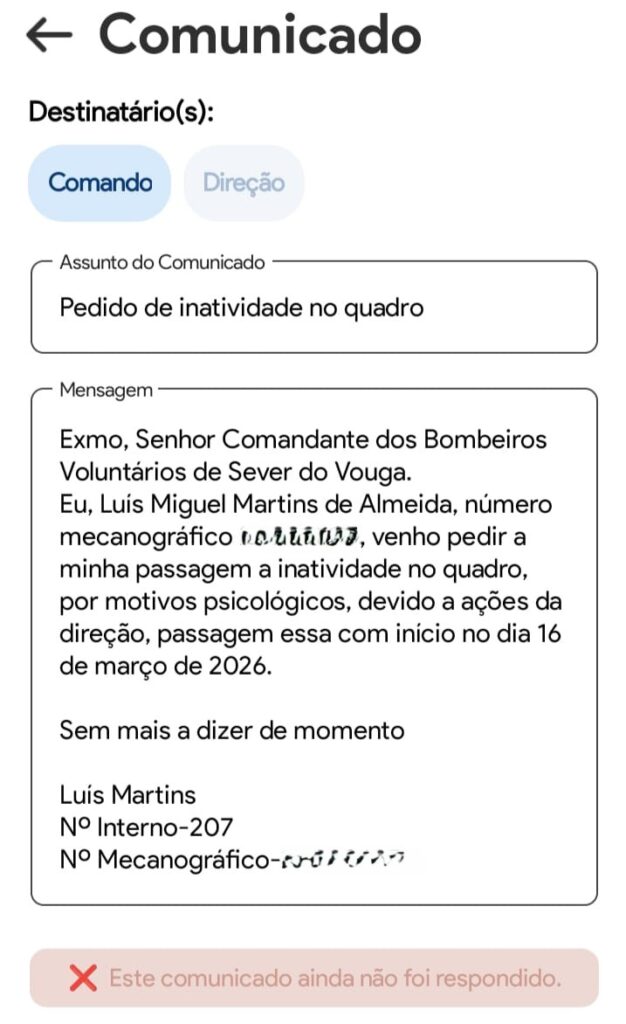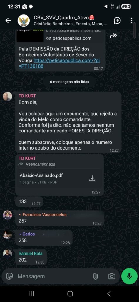 Mensagens internas recentemente divulgadas indicam a existência de um movimento de contestação dentro da corporação dos Bombeiros Voluntários de Sever do Vouga, relacionado com decisões sobre a liderança do comando e com a atual direção da associação humanitária.