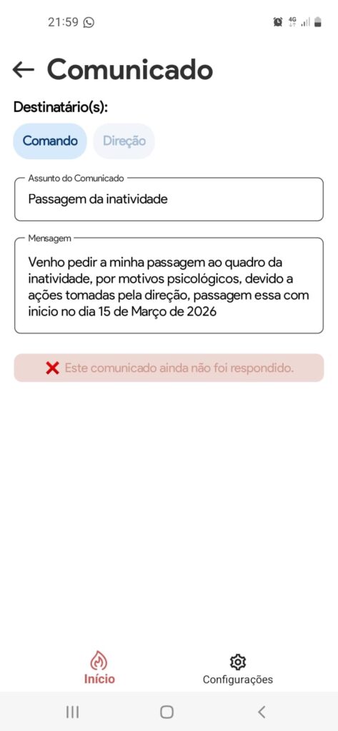 De acordo com o enquadramento legal aplicável aos corpos de bombeiros, o comando tem responsabilidades diretas na organização do serviço e na garantia da capacidade de resposta ao socorro. Por esse motivo, qualquer situação que possa ter impacto na disponibilidade operacional da corporação tende a ser analisada com particular atenção do ponto de vista institucional.