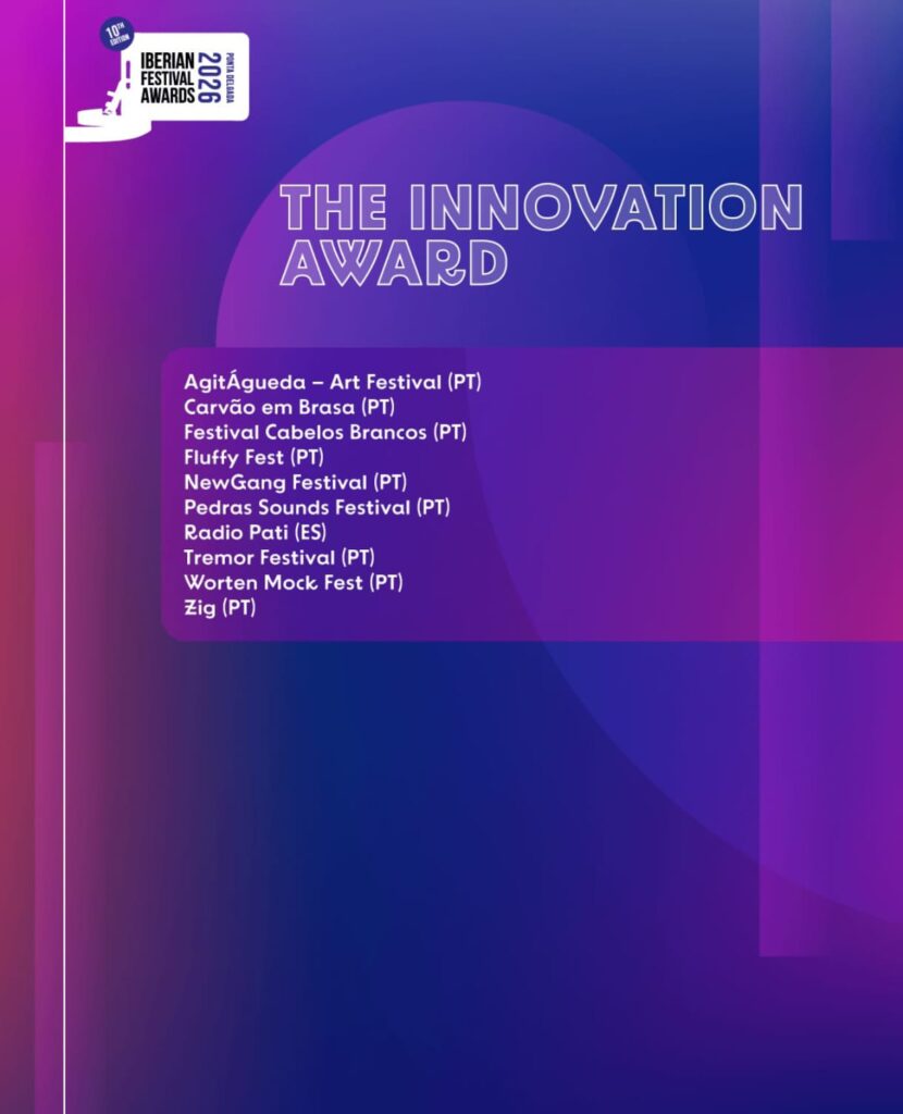 Na categoria Innovation Award, o festival de Águeda figurou ao lado de eventos como o Tremor Festival, Pedras Sounds Festival ou o Festival Cabelos Brancos, todos reconhecidos por projetos diferenciadores no panorama cultural.